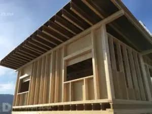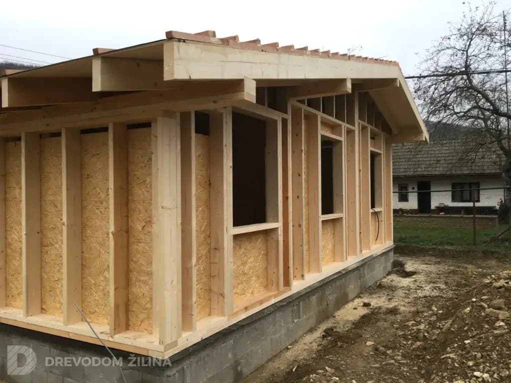 Konštrukcia - Ľahký drevený skelet, flexibilná konštrukcia, pomerne jednoduchá montáž, možnosť vykonať zmeny behom výstavby a taktiež možnosť kombinovať s iným konštrukčným systémom.