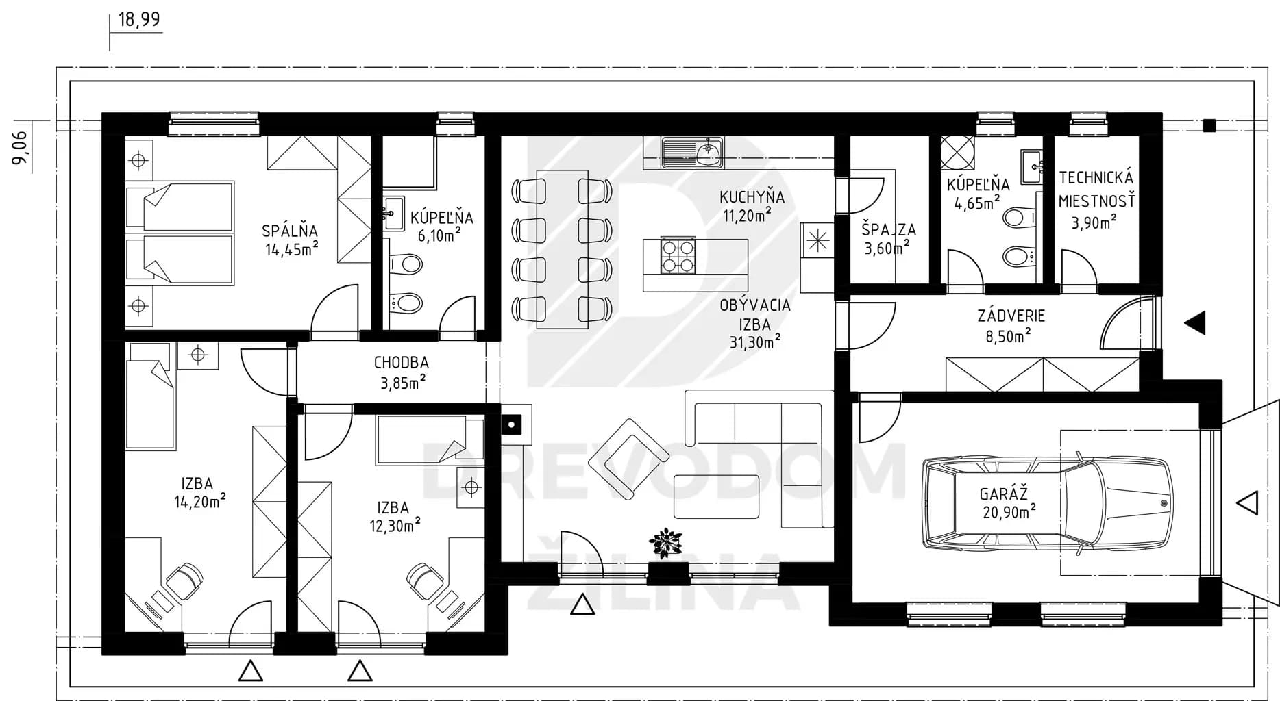 Kompletná projektová dokumentácia obsahuje architektonickú časť, sprievodnú a technickú správu, výkresy v mierke 1:50, a to: pôdorysy všetkých podlaží, pôdorysy základov, výkres krovu a strechy, rezy, pohľady, výkaz stavebných otvorov, vizualizáciu, statiku, vykurovanie, zdravotechniku, elektroinštalácie, vzduchotechniku, tepelno-technický posudok a požiarnu bezpečnosť.