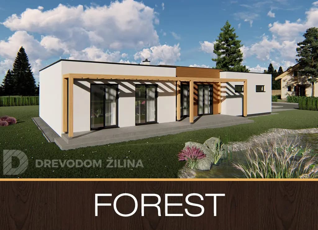 Forest je jednopodlažný rodinný dom prestrešený plochou alt. pultovou strechou spádovanou na východnú stranu. Vchod do domu je umiestený v závetrí na južnej strane, po vstupe do zádveria, odkiaľ je prístupná kúpeľňa a technická miestnosť nasleduje obývacia izba spojená s kuchyňou, ktoré tvoria dennú časť domu. V nočnej časti sa nachádzajú dve samostatné izby, spálňa a kúpeľňa, z viacerých izieb je možný priamy vstup na terasu. Súčasťou domu je aj garáž pre jedno osobné auto..