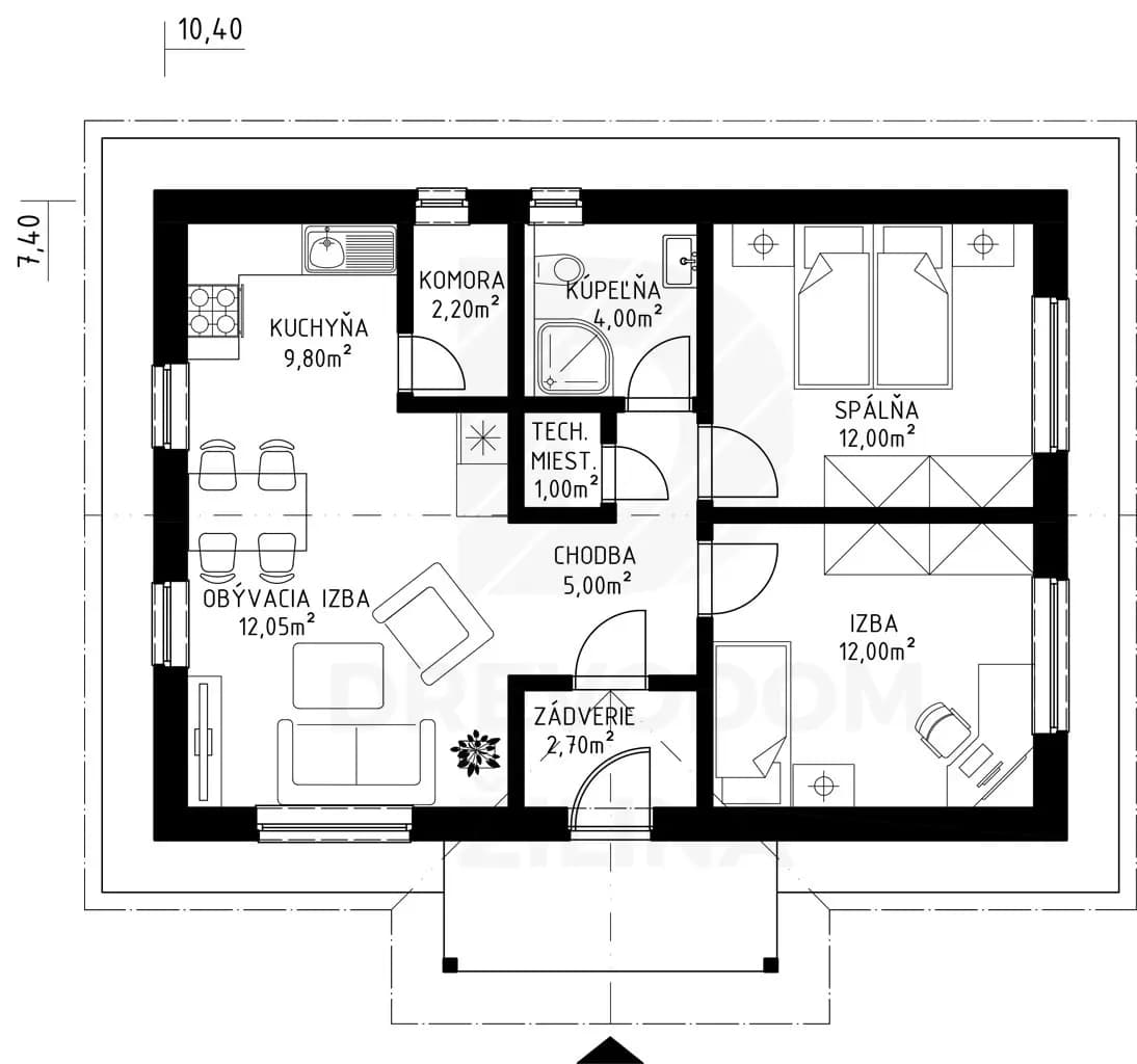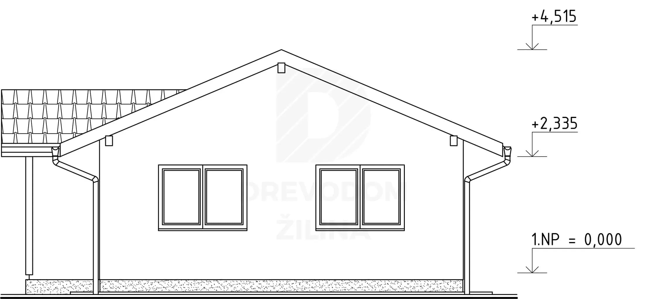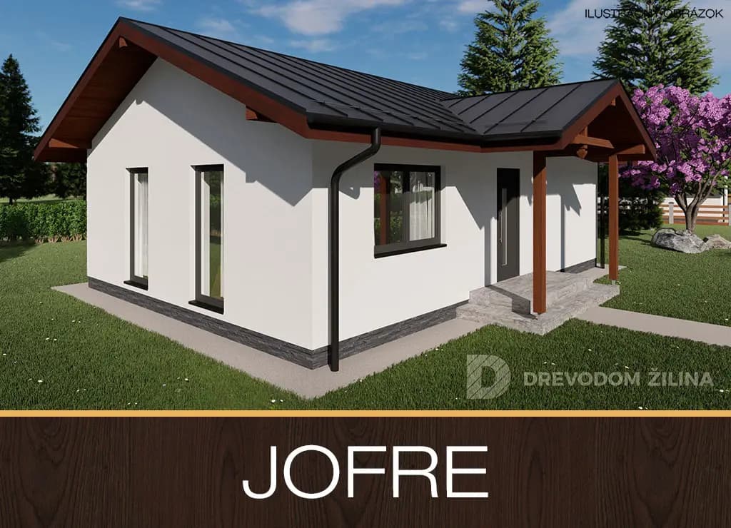 Jednopodlažný rodinný dom Jofre so sedlovou strechou a prestrešením vstupu do domu. Po prechode cez zádverie sa vstupuje do chodby, ktorá spája zvyšné miestnosti v dome, týmito miestnosťami sú obývacia izba s kuchyňou, komora, spálňa, izba, kúpeľňa s WC a technická miestnosť.