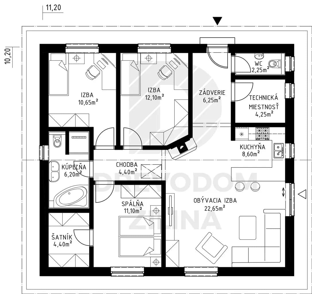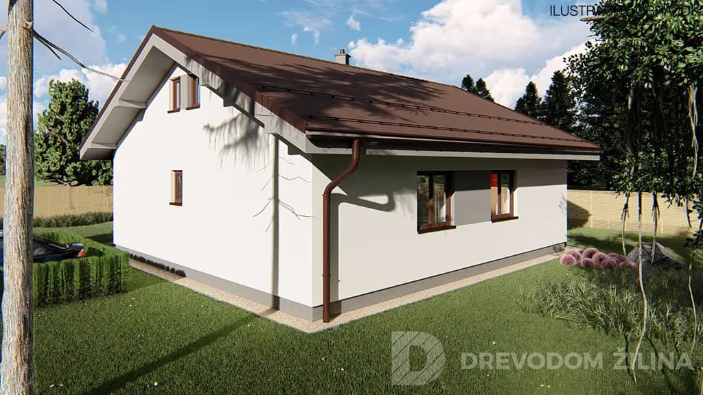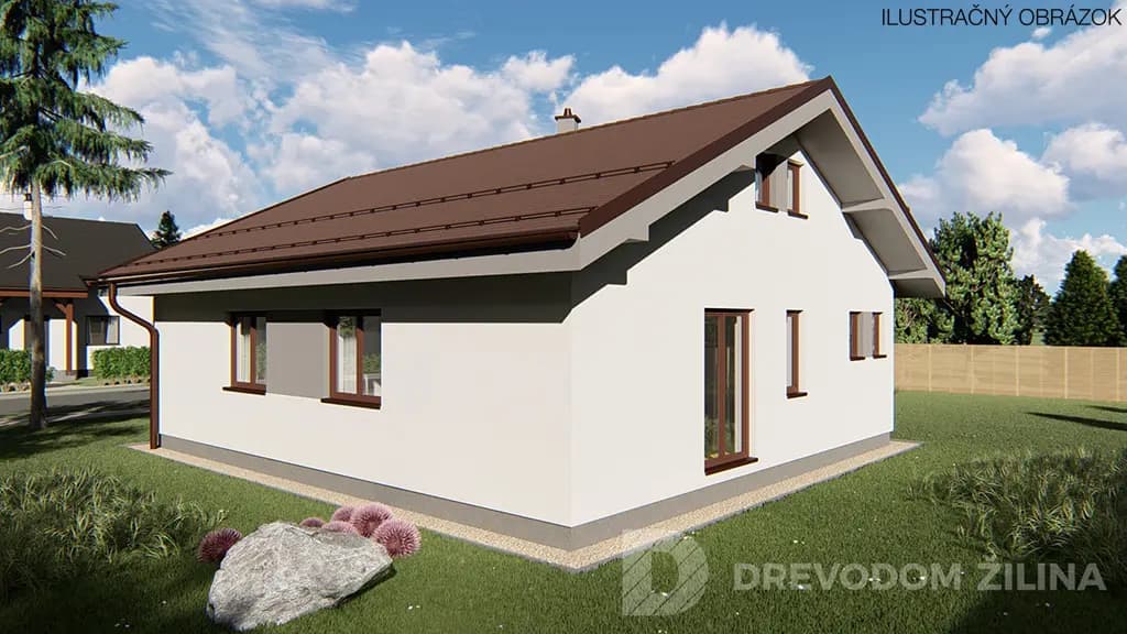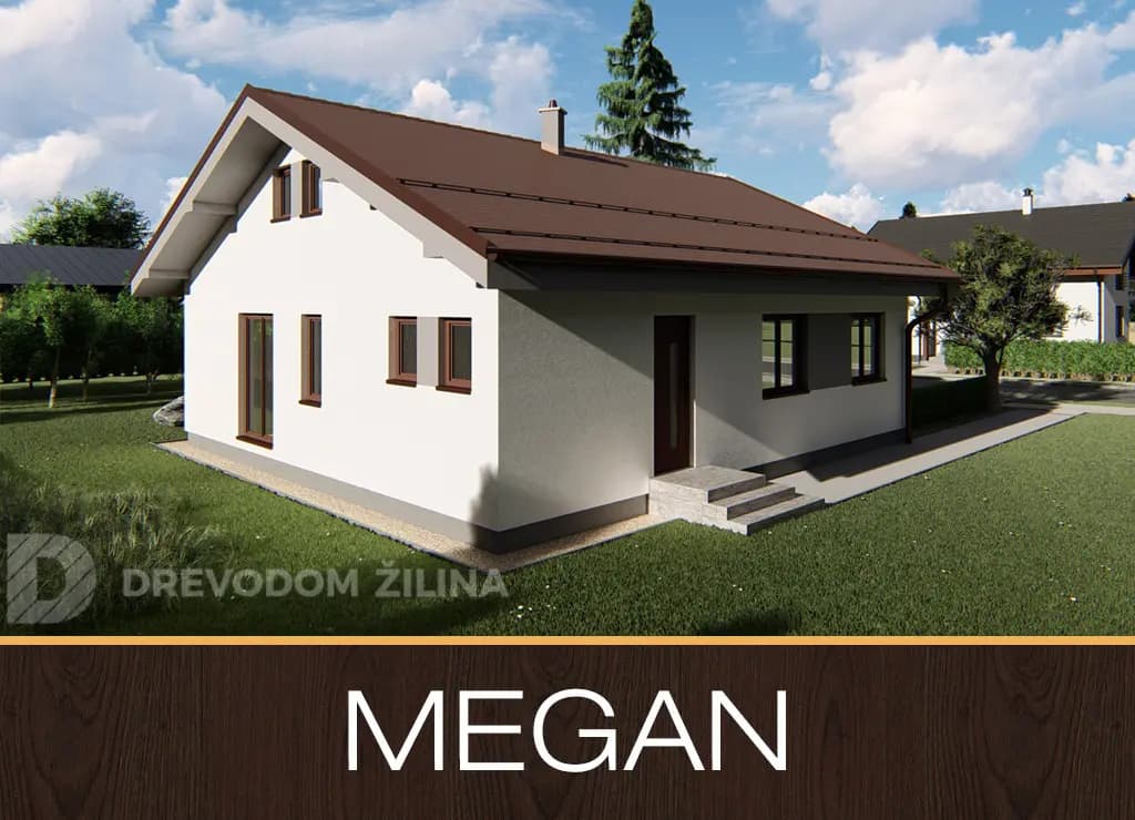 Megan je bungalov so sedlovou strechou, ktorý ponúka štedrú podlahovú plochu na bývanie. Nachádza sa tu obývacia izba spojená s kuchyňou, dve samostatné izby orientované na východ, jedna spálňa rodičov so šatníkom, kúpelňa, samostatné wc a technická miestnosť.