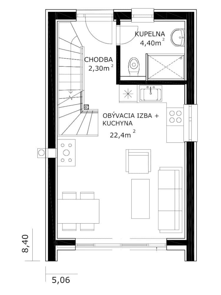 Rekreačná chata Bobrovka je svojou architektúrou radená medzi moderné dizajnové drevostavby. Vstupnými dverami sa dostaneme do chodby v ktorej sú umiestnené schody do 2. poschodia. Tu máme prístup do samostatnej kúpeľne a WC. Na prízemí sa ďalej nachádza kuchyňa prepojená s obývačkou. Pri schodišti plynule prejdeme do otvorenej galérie, ktorá môže slúžiť na spanie. Na druhom podlaží je jedna samostatné izba. Krásna montovaná dvojpodlažná chata s dostatkom priestoru, súkromia a komfortu pre Vás i Vašu rodinu.