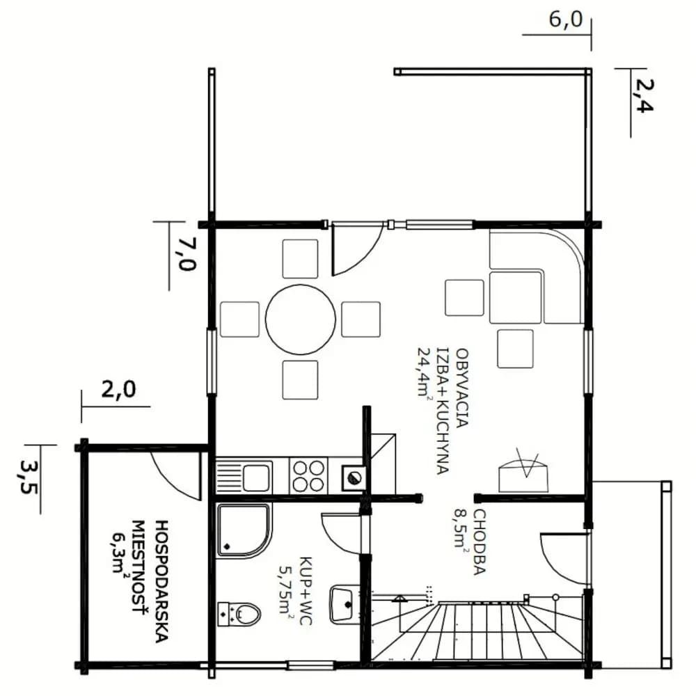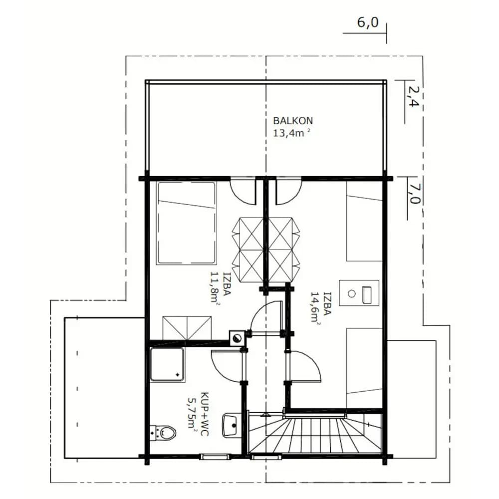 - hrúbkou zrubu 60 mm