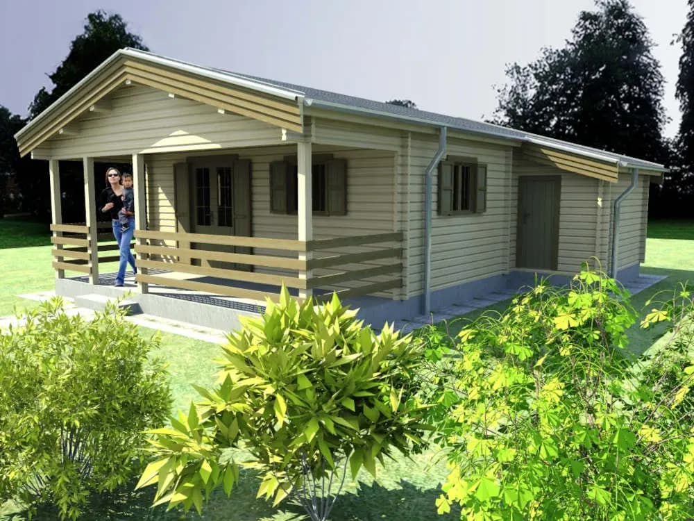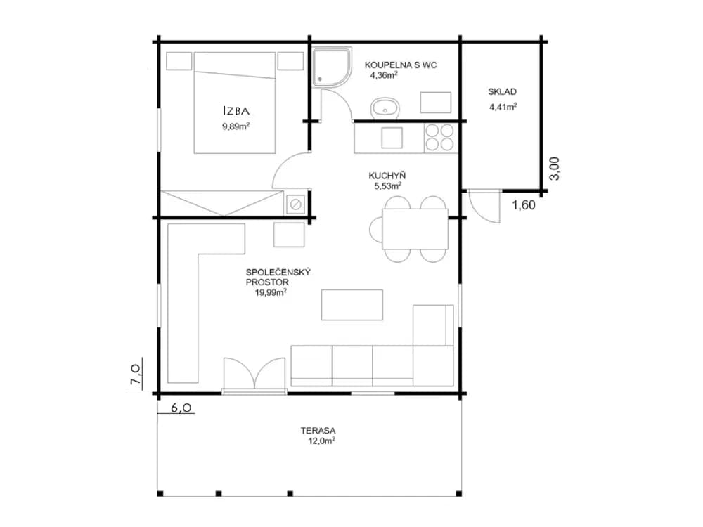 Zrubová rekreačná chata Elena je jednopodlažná.