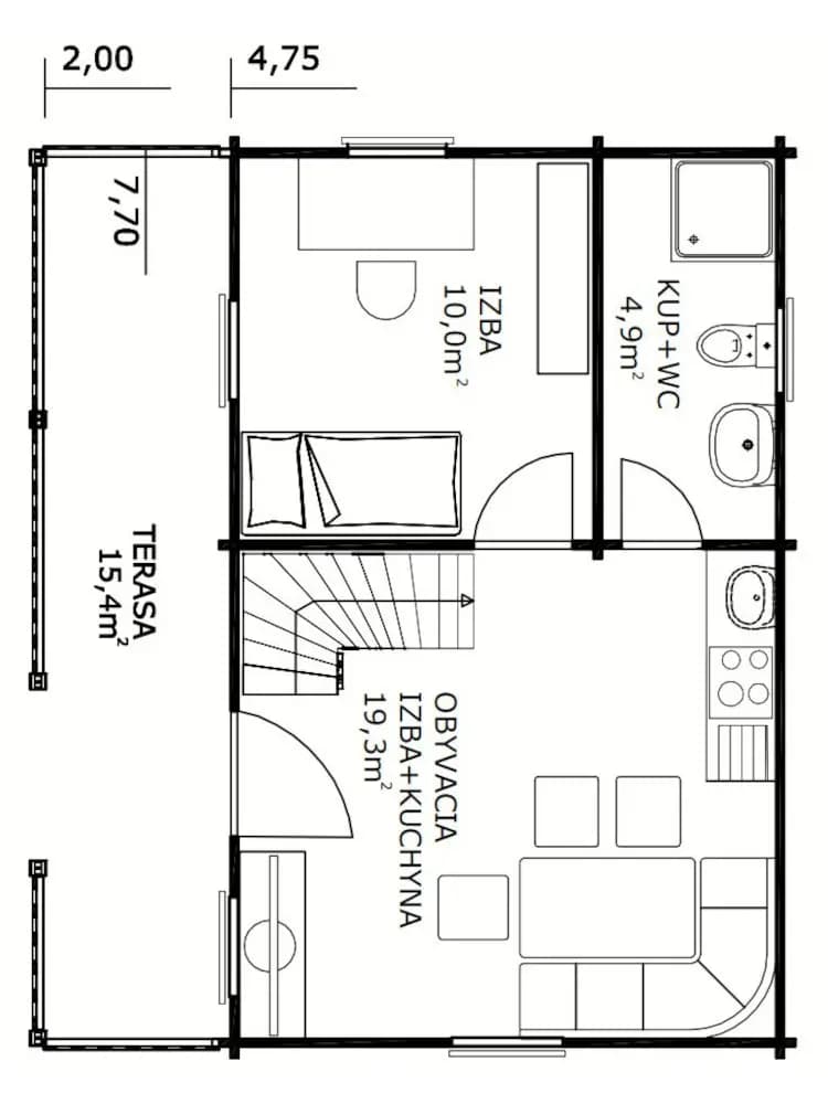 Rekreačná chata Ivana je svojou úžitkovou plochou 65 m² veľkorysá a priestranná, poskytuje dostatok komfortu i súkromia. Vstup je celoprestrešený po celej dĺžke stavby, často využívaný ako terasa. Na prízemí sa nachádza kuchyňa s obývacou časťou, kúpelňa spojená s WC a samostatná izba. Schodišťom prejdeme na druhé podlažie, kde sú 2 samostatné izby. Krásna zrubová dvojpodlažná stavba s dostatkom priestoru, súkromia a komfortu pre Vás i Vašu rodinu.