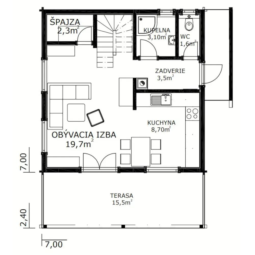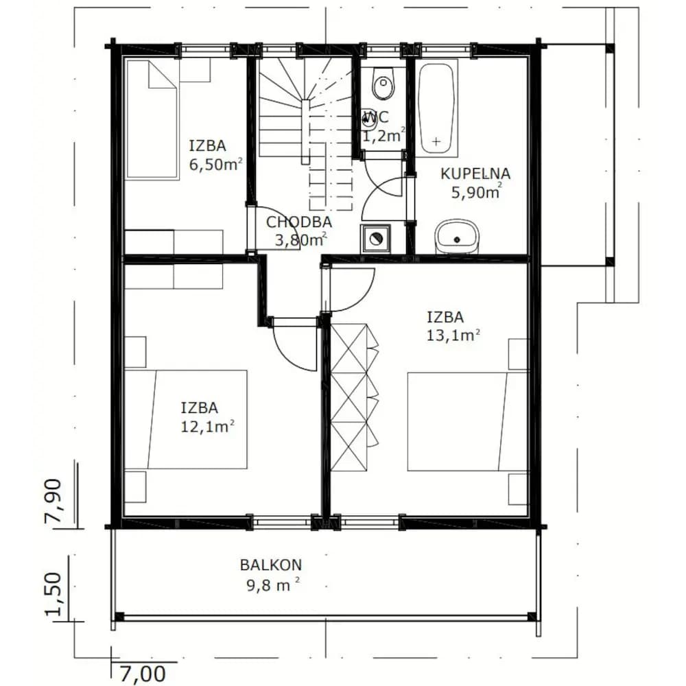 - hrúbkou zrubu 60 mm