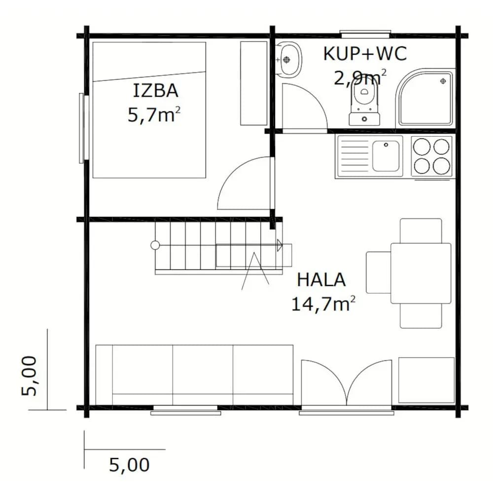 - hrúbkou zrubu 60 mm