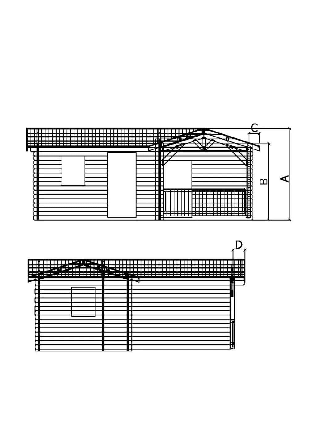 D: Čelný presah strechy: 36 cm