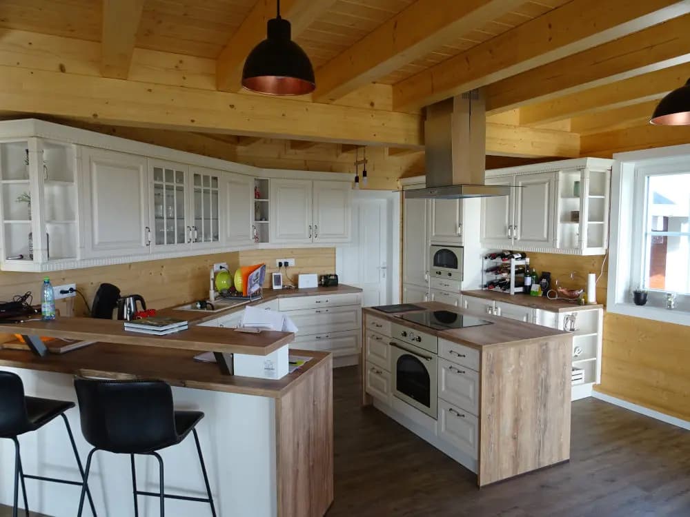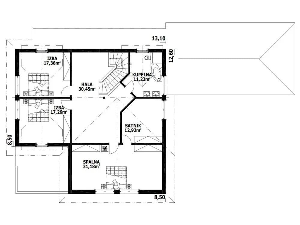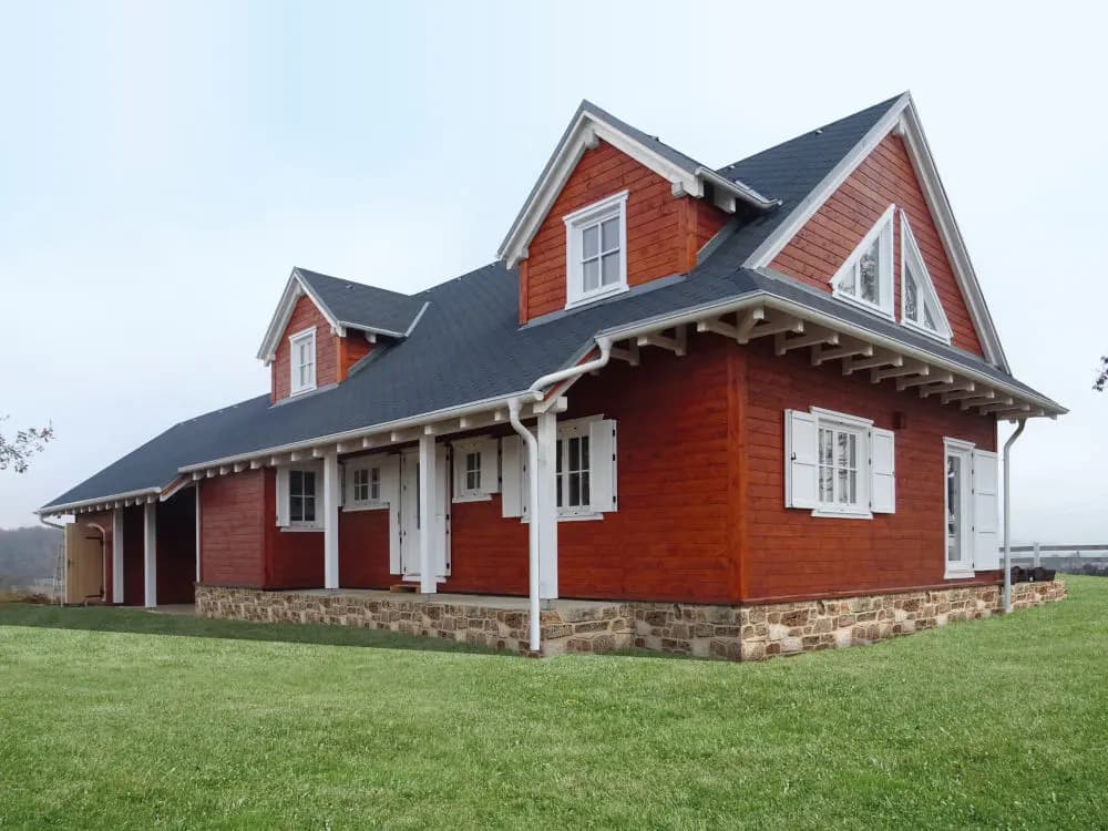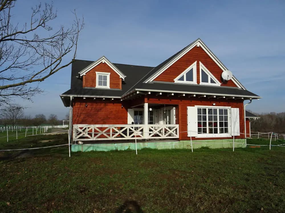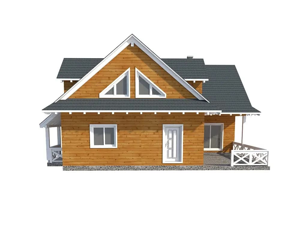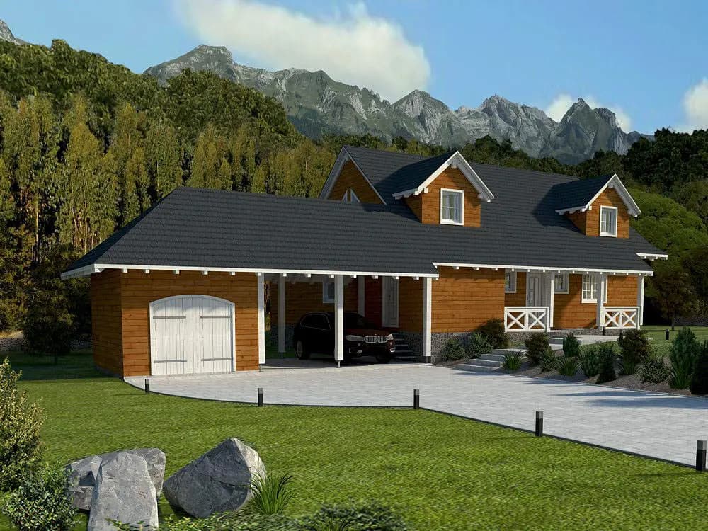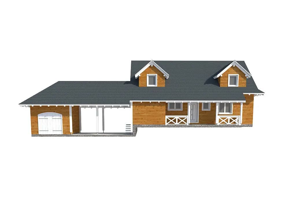 Zrubový dvojpodlažný rodinný dom. Zo vstupnej chodby je prístup do samostatného WC, ďalej do pracovne, samostatnej izby a veľkej priestrannej kuchyne spojenej s obývacou časťou a jedálenskou časťou. Celý priestor je presvetlený veľkými francúzskymi oknami s výstupom na terasu. Z kuchyne je vstup do veľkej špajze/technickej miestnosti prístupnej aj z vonku. Na druhom podlaží sú 3 spálne, kúpeľňa s WC, veľký šatník. Tento dom je vhodný pre veľkú rodinu. K domu patrí aj vonkajšia zrubová časť, prepojená s domom plným prestrešením, kde vzniklo kryté miesto pre dve autá.
