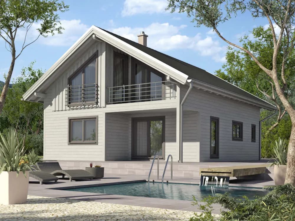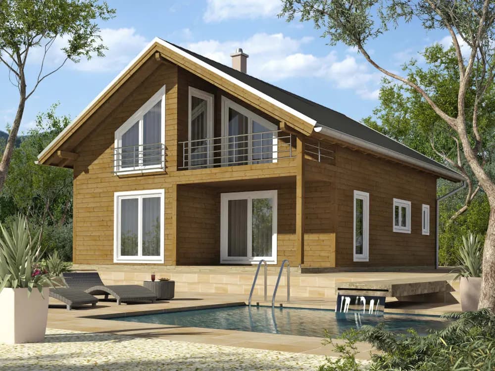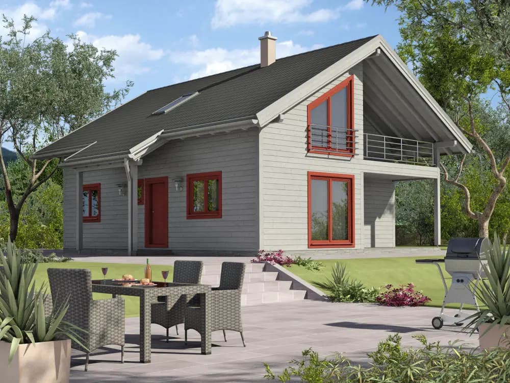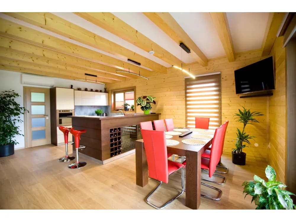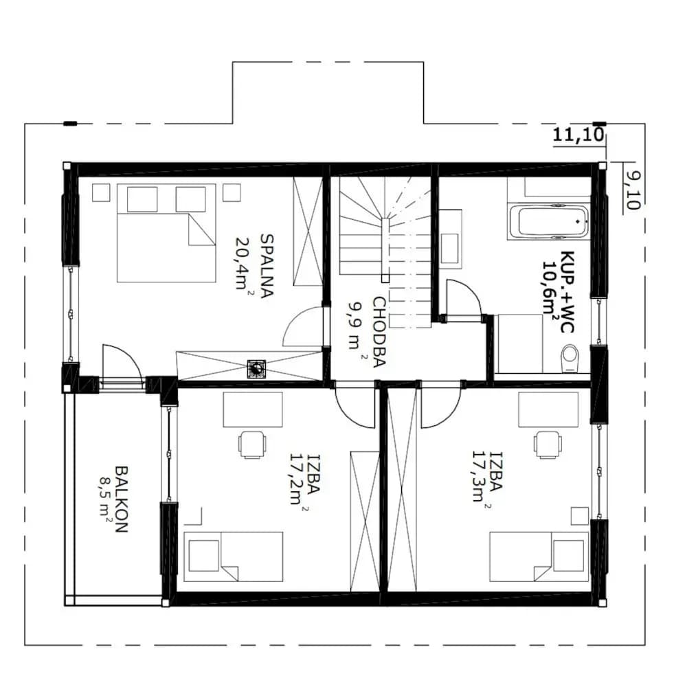 Pri vstupnej chodbe nachádza izba vhodný ako pracovňa a samostatné WC. Kuchyňa je spojená s jedálenskou časťou. Pri kuchyni je aj špajza a technická miestnosť. Obývacia časť s rohovým krbom sa pohľadovo spája jedálňou. Cez francúzske okná je prístup k prestrešenej terase. Na poschodí sa nachádzajú veľká kúpeľňa s WC, veľká spálňa s prístupom na prestrešený balkón a dve ďalšie samostatné izby. Prakticky riešený dom na dennú časť na prízemí a nočnú časť v hornej časti domu. Je to naozaj priestranný vzdušný dom vhodný pre rodinu s deťmi.