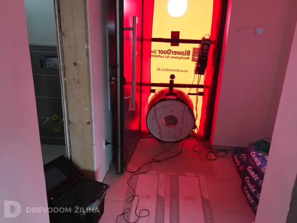 Blower door test je test merania vzduchotesnosti budovy, overuje kvalitu realizovanej stavby. Toto meranie je vhodné vykonávať pri realizovaní nízkoenergetických a ultranízkoenergetických domov, či už ide o drevodom alebo murovanú stavbu. Stanovuje sa celková intenzita výmeny vzduchu n50 h-1 pri tlakovom rozdiele 50 Pa. Samotný test sa vykonáva pomocou ventilátora umiestneného v dvernom otvore, ktorý vyvoláva pretlak alebo podtlak v interiéri budovy, aby bol tlakový rozdiel medzi interiérom a exteriérom 50 Pa. Po dosiahnutí potrebného tlaku sa zistí objem vzduchu, ktorý je potrebný aby bol tlakový rozdiel zachovaný. Následne sa tlakový rozdiel postupne znižuje aby bola vytvorená regresná priamka zo všetkých nameraných dát. Výsledok sa dá vyjadriť ako podiel objemu vzduchu ktorý prejde cez konštrukciu budovy za jednu hodinu. Ako príklad môžeme uviesť hodnotu 0,5; ktorá znamená, že za každú hodinu sa cez obalové konštrukcie budovy nekontrolovane vymení polovica objemu vzduchu v budove. Čím nižšiu hodnotu pri teste dosiahneme, tým je vzduchotesnosť budovy vyššia a teda kvalitnejšie prevedená.